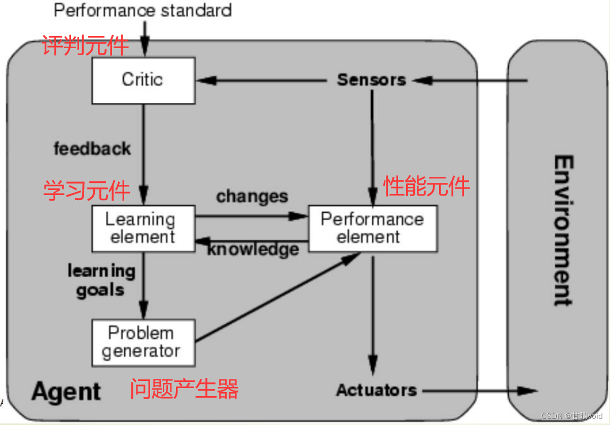 【2020期中】学习Agent:由性能元件,评判元件,学习元件,问题产生器构成